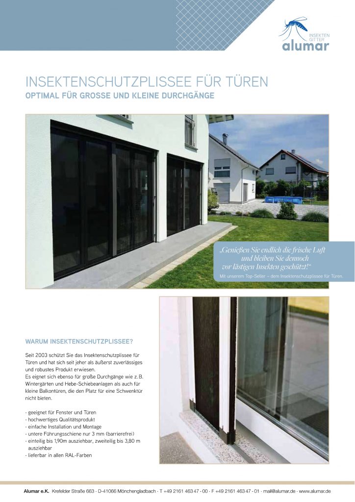 Unsere Insektenschutztür mit hochwertigem Plisseegewebe ist äußerst vielseitig und leicht anwendbar. Sie eignet sich perfekt für breite Durchgänge wie Schiebetüren oder Wintergärten und ist eine ideale Lösung für Balkontüren, die keinen Platz für schwenkbare Insektenschutz-Drehtüren bieten. Bestellen Sie Ihr maßgefertigtes Insektenschutzgitter in verschiedenen Farben und halten Sie lästige Besucher draußen, besonders an warmen Sommerabenden.